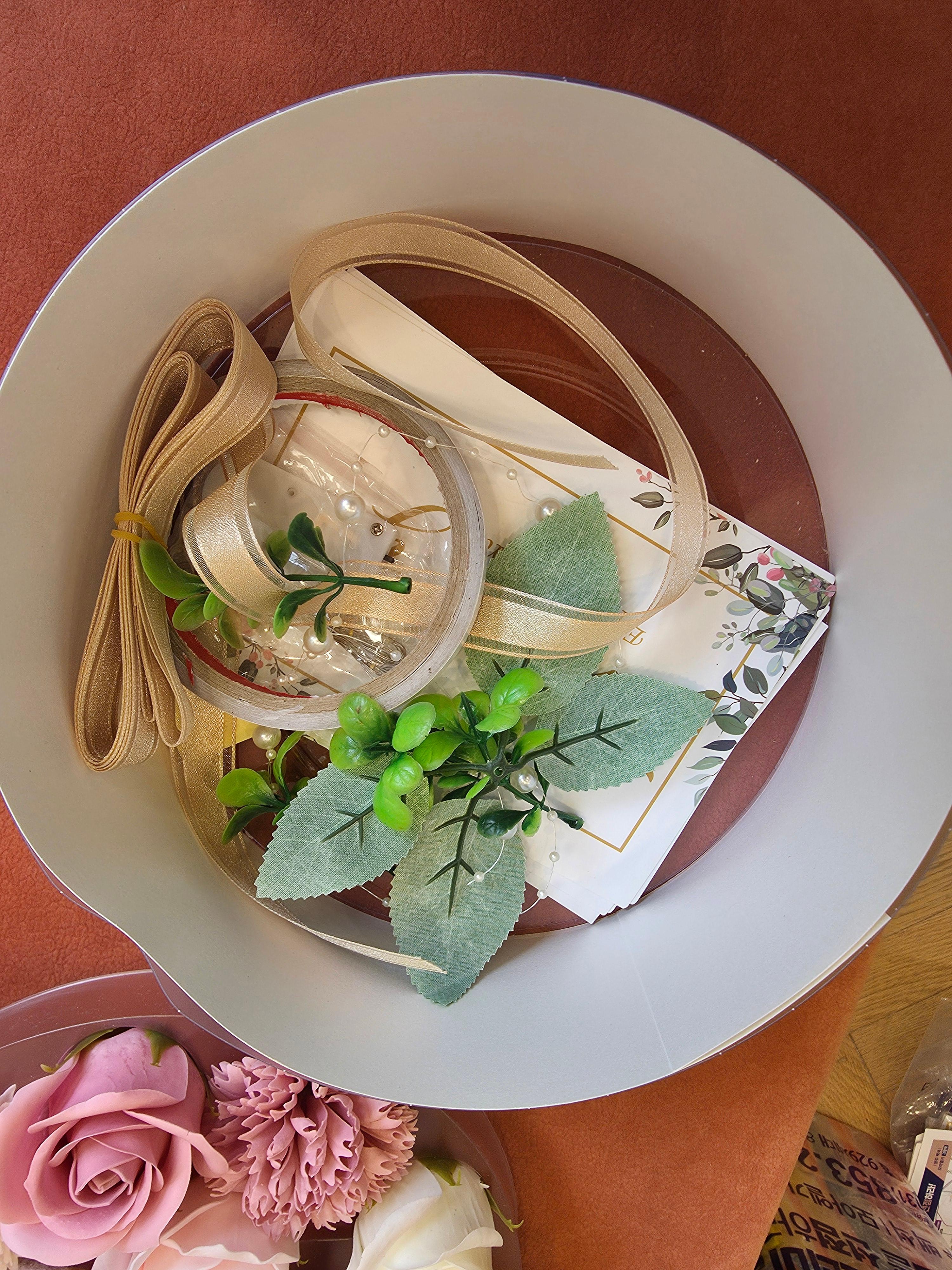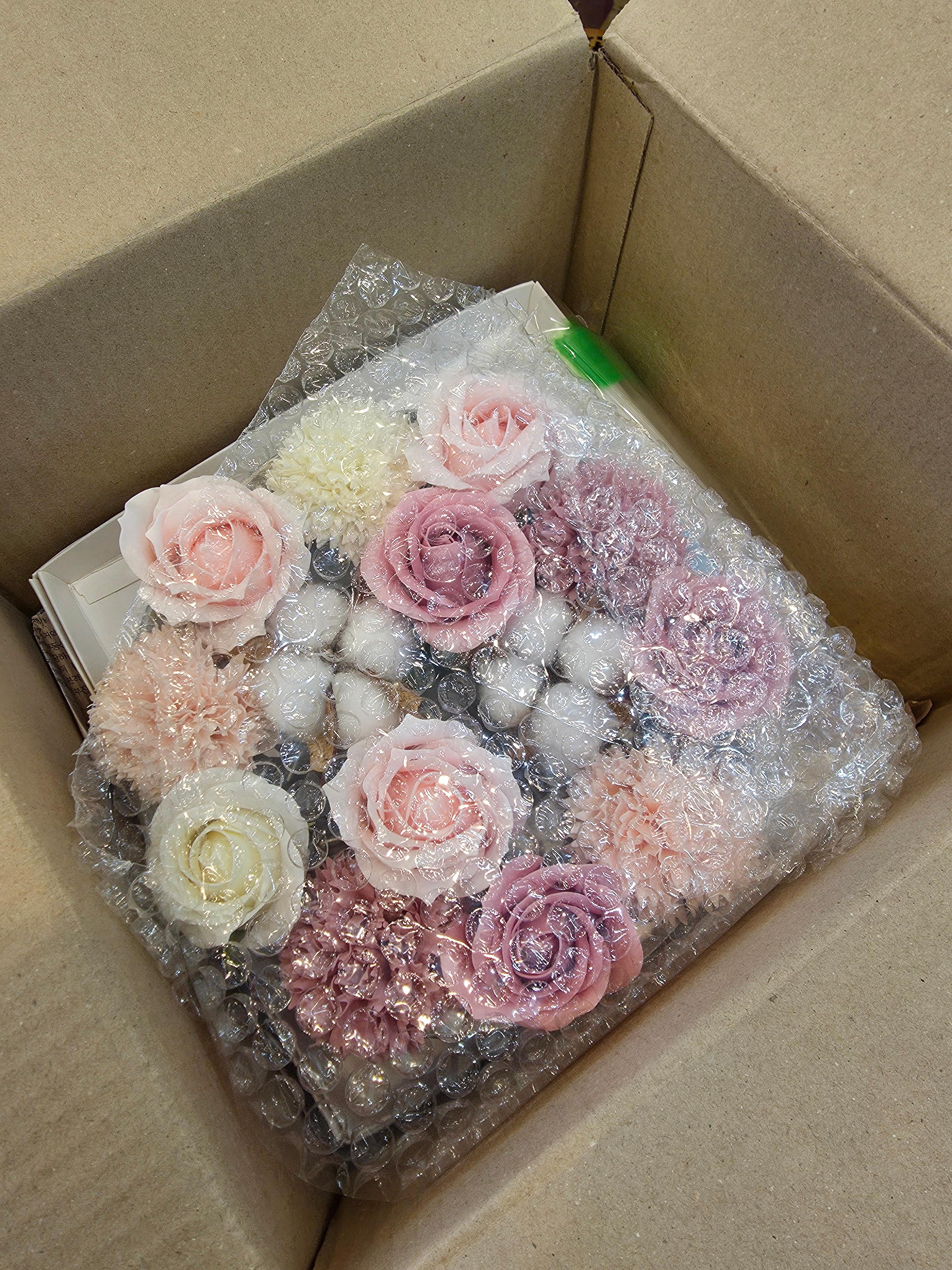 완성 후에는 꽃이나 돈 장식이 틀어지지 않도록 박스 안에서 움직이지 않게 잘 고정해주는 게 중요했어요.